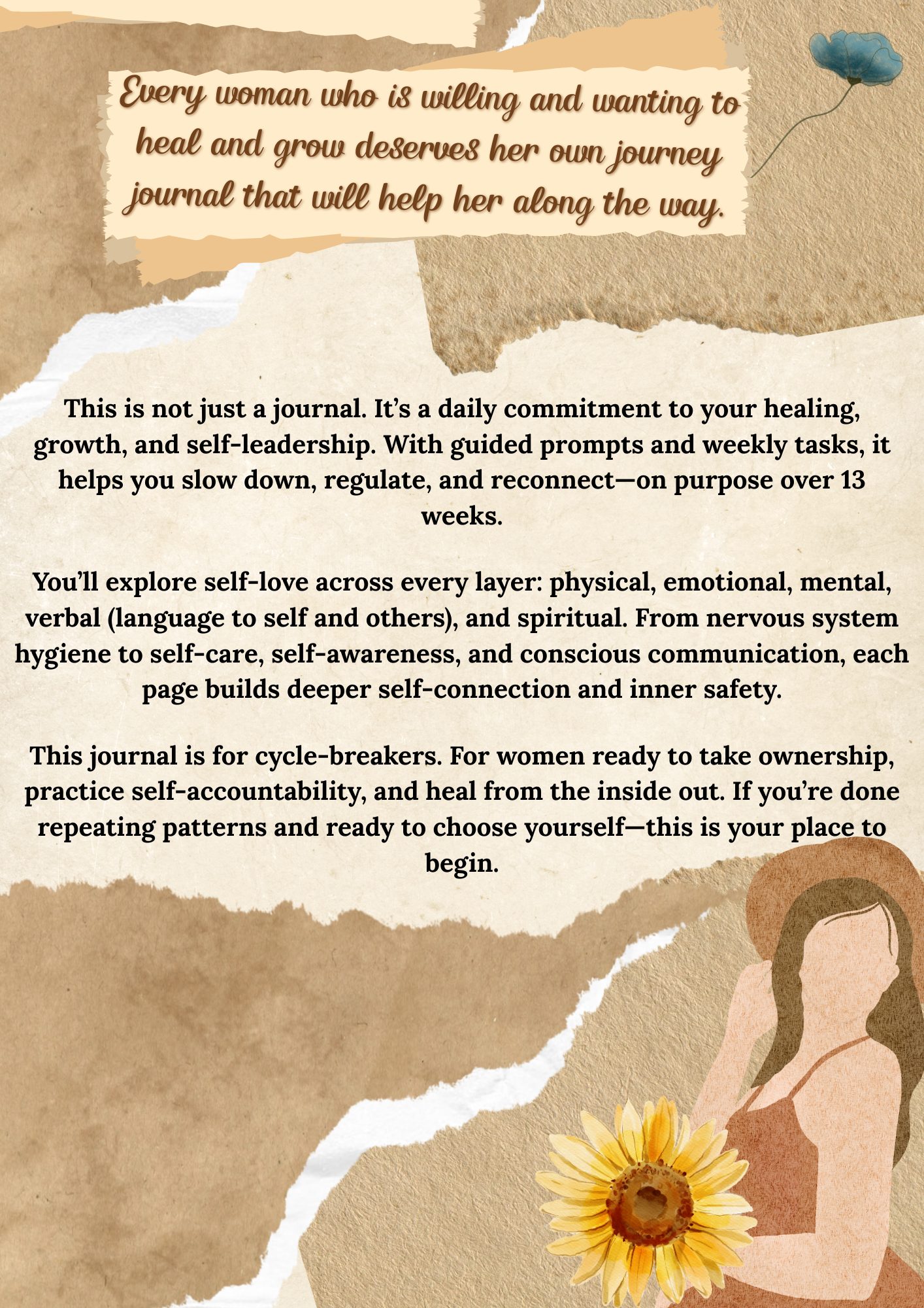 This journal is for cycle-breakers. For women ready to take ownership, practice self-accountability, and heal from the inside out. If you’re done repeating patterns and ready to choose yourself—this is your place to begin.